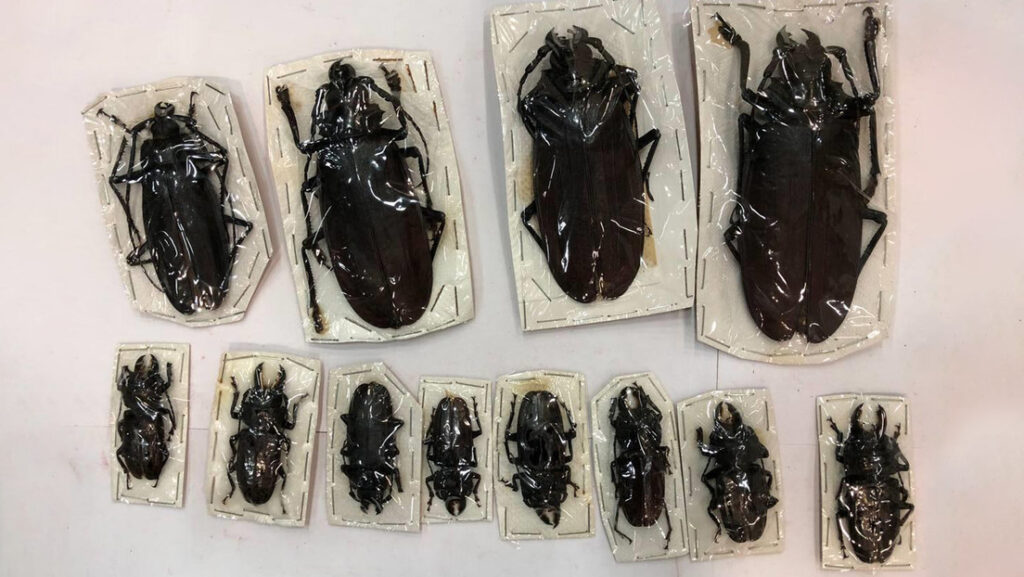Debido a que no contaban con los permisos requeridos, los paquetes fueron devueltos al remitente. De acuerdo con la inspección, entre los insectos se encontraba el escarabajo titán de la familia Cerambycidae, el más grande del mundo, con casi 20 centímetros de largo. También había escarabajos rinoceronte de la familia Scarabaeidae.