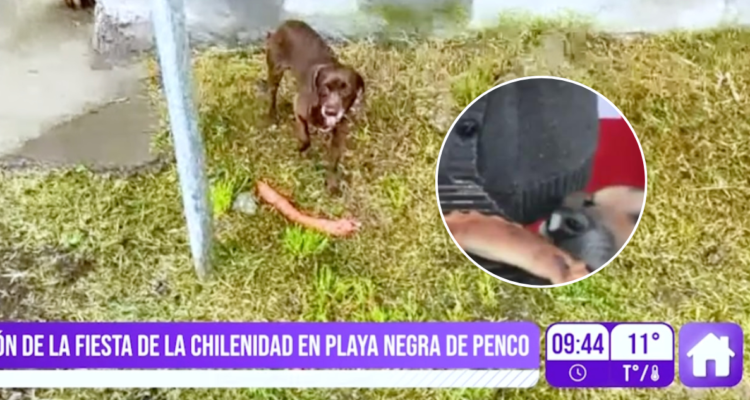 Perrito fue captado en cámara robándose una enorme longaniza en Penco: homenajeó al «roba empanadas»