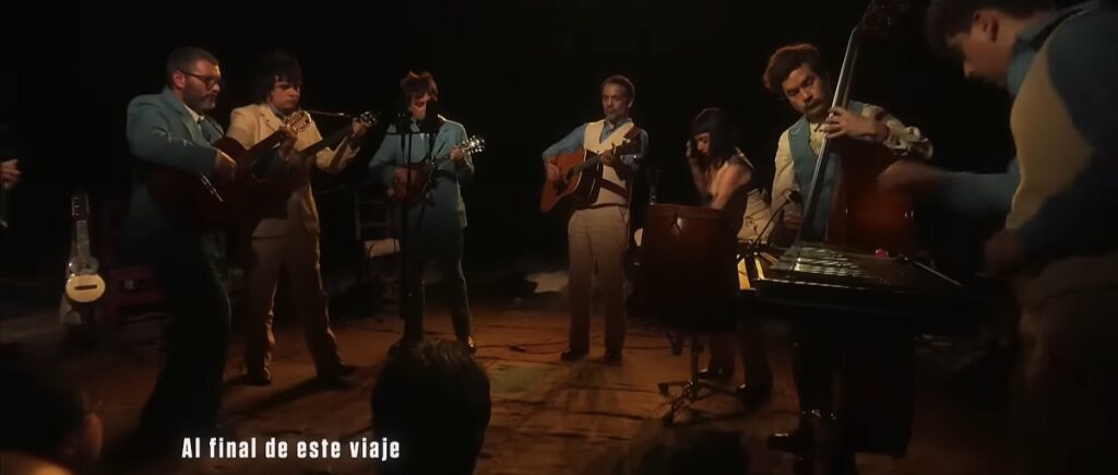 Sin embargo, además de los cuatro integrantes principales y Cancamusa, uno de los protagonistas inesperados de este material audiovisual fue Gregorio Madinagoitia, un profesor de música de Lota y viejo amigo de la banda que fue parte de este Unplugged, apoyando en las cuerdas, percusiones y coros a lo largo de la presentación.