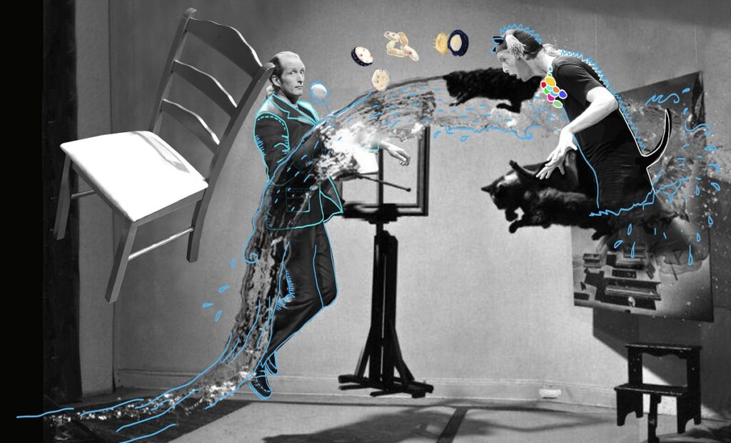 De ahí, entonces, que en “El Durmiente” el humor acompañe las peripecias de un Ministro que, camino a su oficina, sin darse cuenta, se transforma en chef que utiliza la inteligencia artificial, vendedor de la “verdad más verdad” y en un improvisado relator de carreras de caballo.