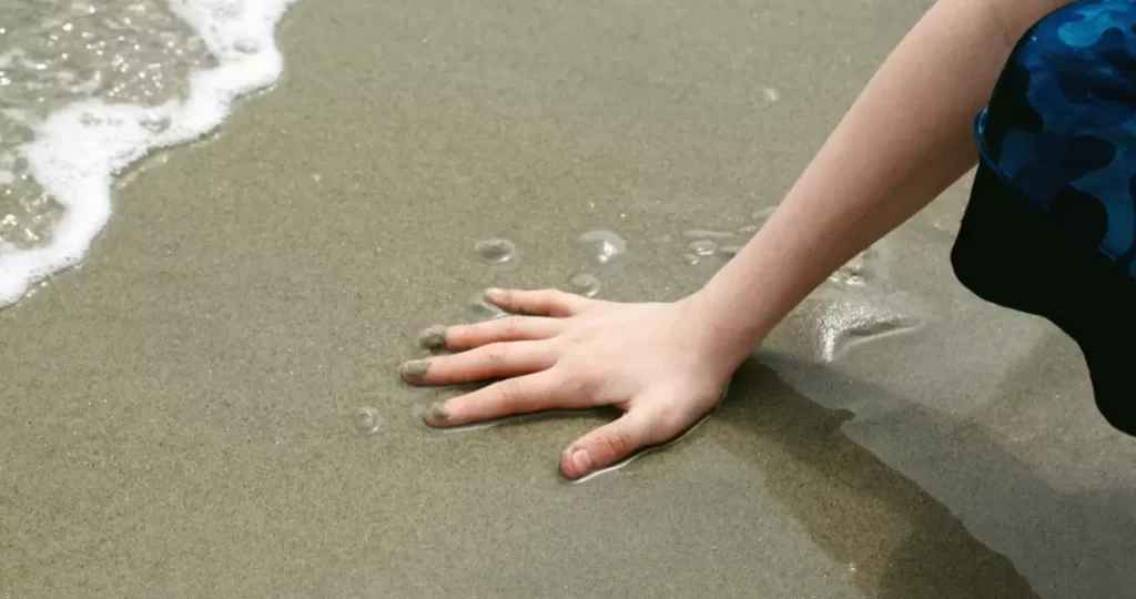 Para el estudio, los participantes utilizaron sus dedos, moviéndolos suavemente por arena para localizar un cubo oculto antes de tocarlo.