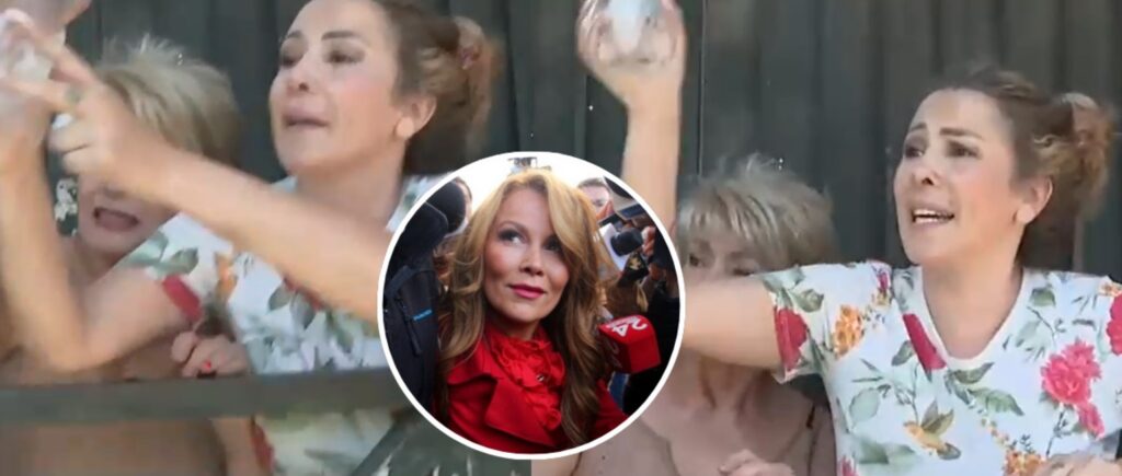 Enfrentamiento que molestó a la ex «Mekano» y a su mamá, pues comenzaron a lanzarle agua al individuo.