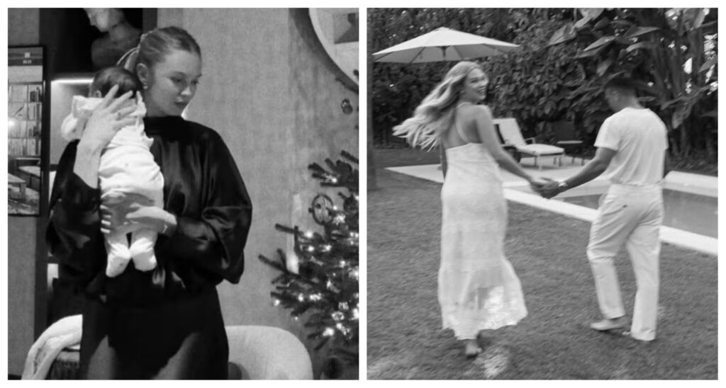 La celebración tuvo lugar en un entorno invernal, escenario que acompañó este significativo momento navideño como padres. En una de las fotografías se aprecia una mesa cuidadosamente dispuesta, donde destaca un biberón, mientras que en otra imagen la modelo aparece sosteniendo a la pequeña Bela, nacida hace algunos meses.