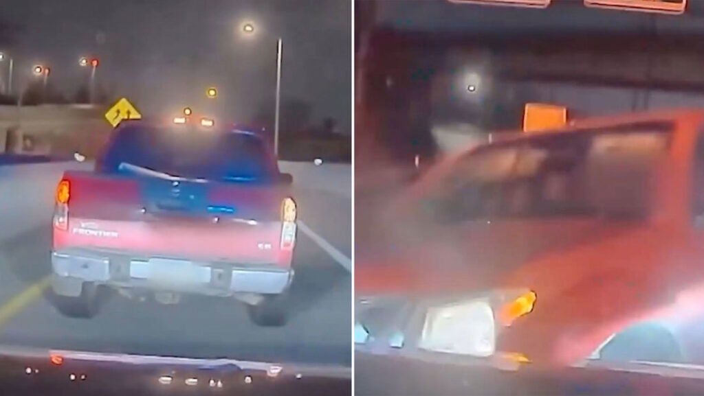Imágenes de una cámara corporal muestran el momento en que un sospechoso intenta escapar de la policía durante una persecución a alta velocidad. Tras ser detenido su vehículo, el hombre sale del auto y salta desde la carretera, pero minutos después es detenido por agentes del Departamento de Policía de Kansas City (EE.UU.).
