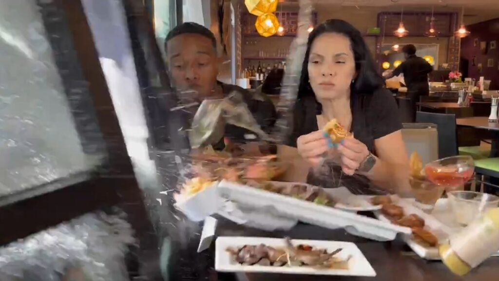 Dos creadores de contenido gastronómico, Patrick Blackwood y Nina Santiago, tuvieron suerte de seguir con vida después de que un automóvil se estrellara contra el restaurante en EE.UU. en el que estaban filmando un video disfrutando de la comida. El vehículo chocó contra la ventana junto a la mesa de los ‘youtubers’, cubriéndolos con una lluvia de cristales. Milagrosamente, los dos salieron prácticamente ilesos del siniestro.