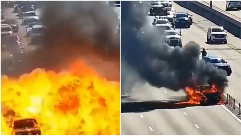 IMPACTANTE VIDEO: Un auto estalla en una autopista y crea un muro de llamas de tres carriles