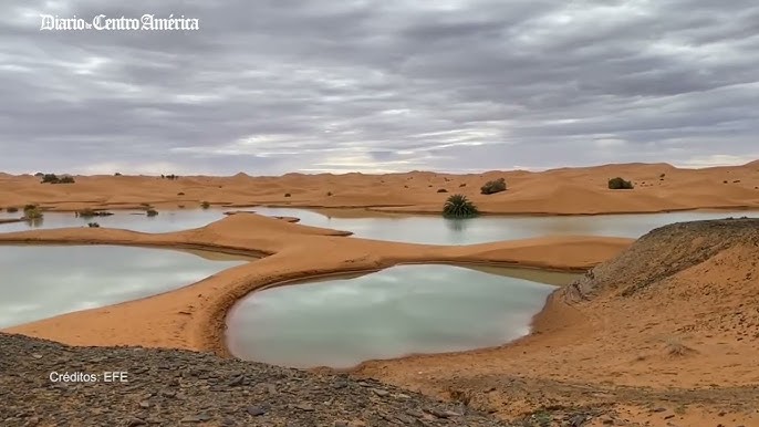 Las lluvias excepcionales que afectaron al Sáhara el mes pasado han dejado un impresionante fenómeno en medio del desierto de Marruecos. En Merzouga, las intensas precipitaciones formaron lagunas entre las dunas, y en la provincia de Zagora, un lago que había estado seco por más de 50 años ha vuelto a llenarse.