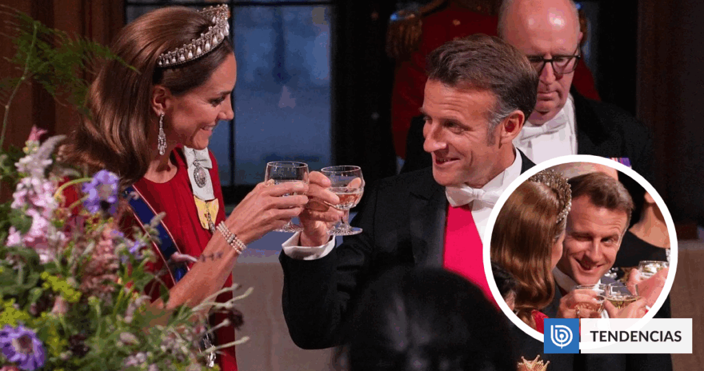 El primero de ellos fue un beso en la mano que Macron ofreció a la princesa de Gales durante el recibimiento oficial y el segundo, su comentado guiño durante el brindis de la cena de Estado.