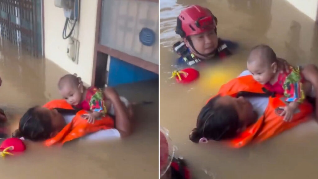 Rescate al límite: así protege a un bebé en medio de una inundación masiva (VIDEO)