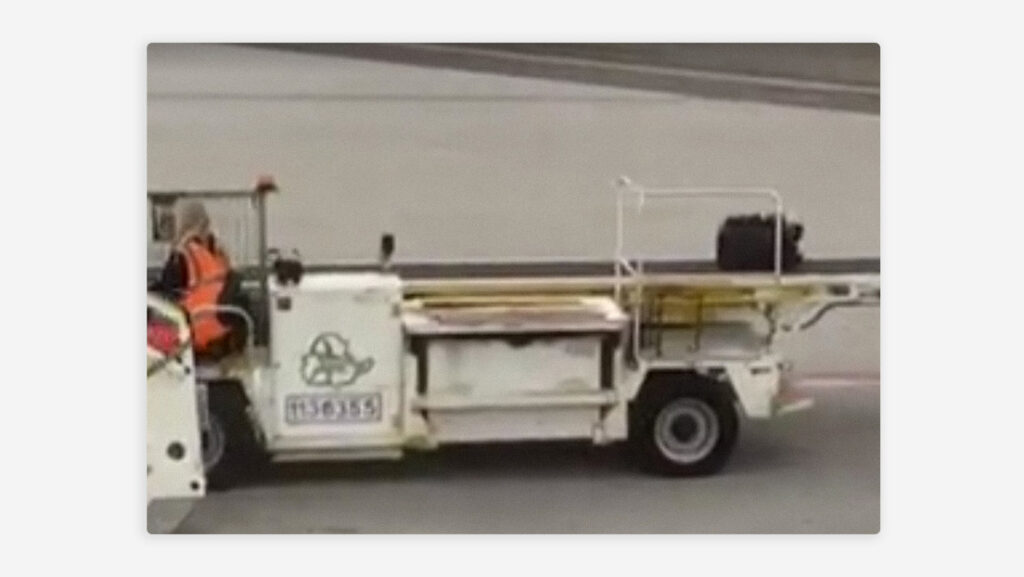 El hombre, identificado como Patrick, se encontraba en su asiento correspondiente cuando miró por la ventana y vio una de las dos maletas que había facturado en un vehículo del aeropuerto, en la pista.