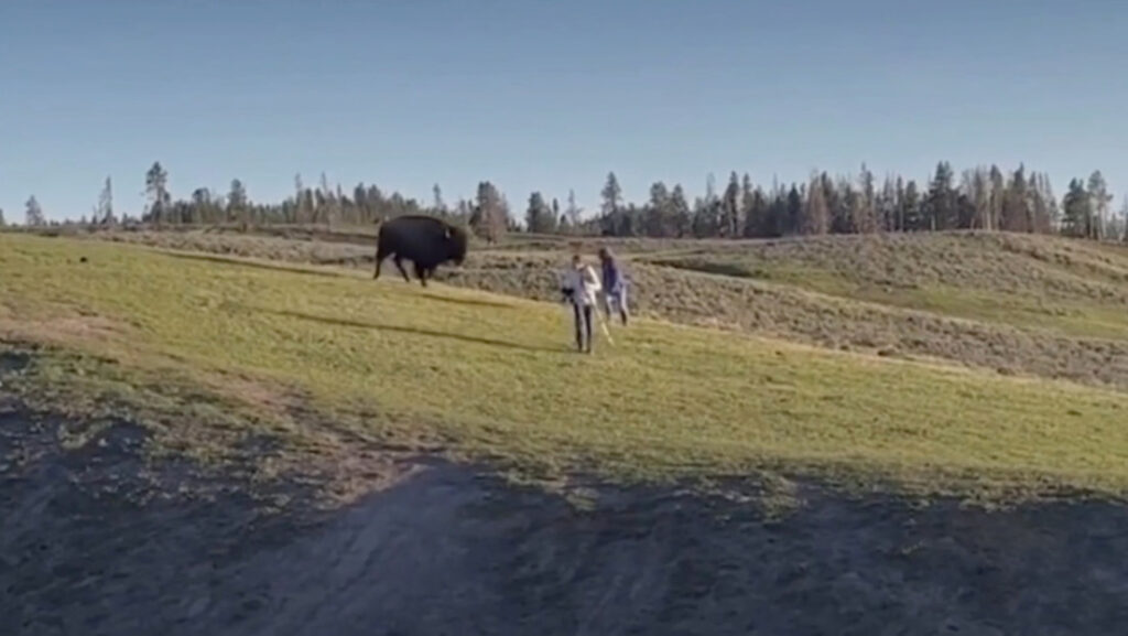 Dos turistas fueron atacados por un bisonte en el Parque Nacional de Yellowstone (EE.UU.) tras haber ignorado las advertencias, según muestra un video captado en mayo y publicado recientemente por una fotógrafa de naturaleza. Ignorando al animal, de unos 450 kilos, los excursionistas le dieron la espalda y se dirigieron a la carretera. Escaparon por poco de sufrir graves heridas cuando el animal corrió y se abalanzó hacia ellos a toda velocidad, pero falló.