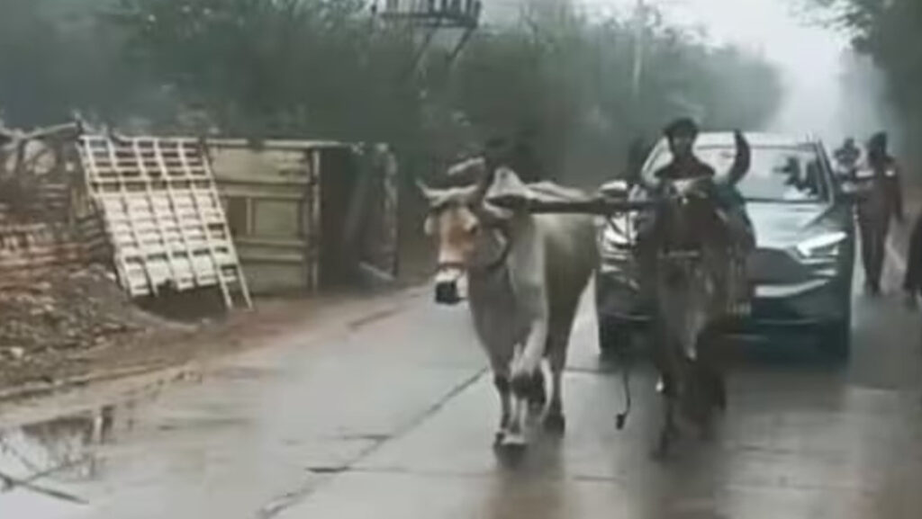En las redes sociales se ha viralizado un video en que se vé como dos bueyes tiran de un coche eléctrico, después de que sufriera una avería en el estado de Rajastán, al oeste de India.