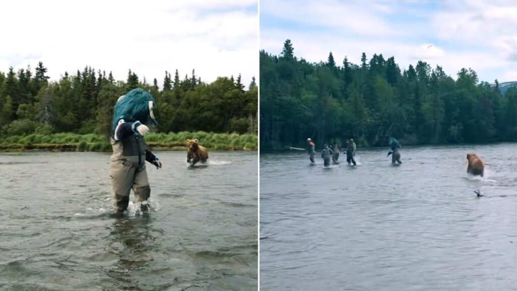 El equipo de hockey Seattle Kraken y su mascota Buoy, el troll marino, estaban recientemente en una excursión de pesca con mosca en Alaska, cuando apareció un invitado inesperado: un oso grizzly. Un video difundido por los deportistas muestra cómo el animal observa a los pescadores desde el otro lado del río y, al parecer, estaba especialmente interesado en la criatura de pelo azul, avanzando hacia el grupo y lanzando ráfagas de agua antes de desviarse de nuevo.
