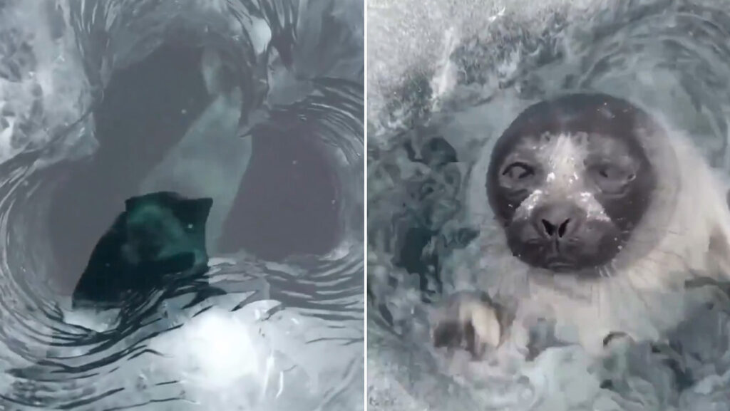 Un pescador cavó un hoyo en el helado lago Baikal, en Rusia, y decidió grabar en video su profundidad antes de comenzar a pescar. En ese momento, una foca del Baikal emergió por el orificio, tomó aire y se sumergió de nuevo.