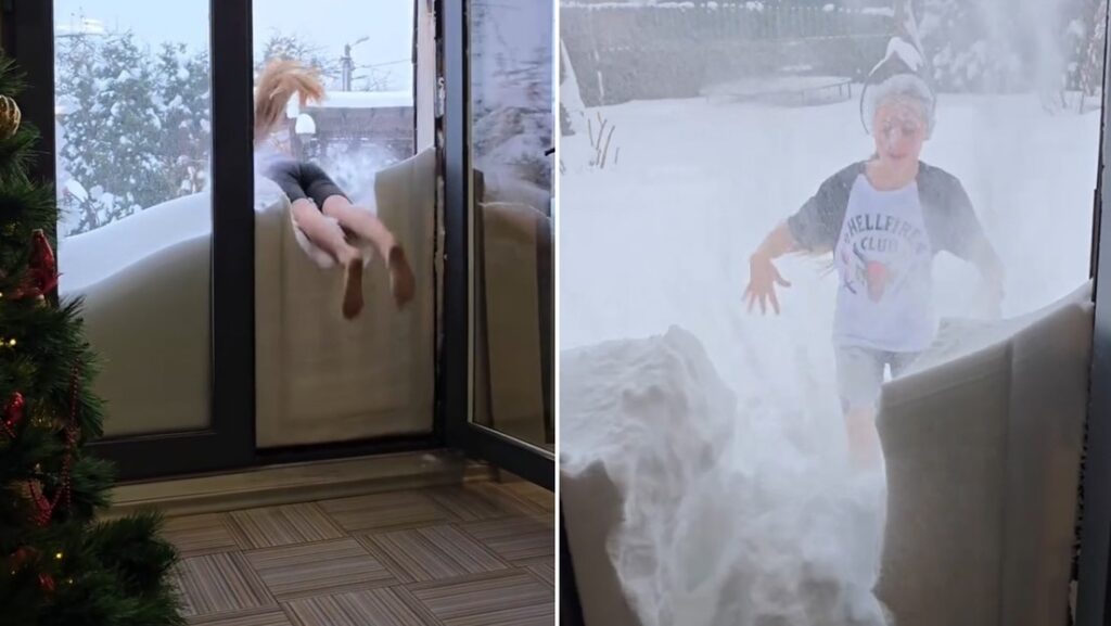 En las redes sociales circulan videos de las consecuencias de la intensa nevada que este viernes azotó la ciudad y la provincia de Moscú. Una de las grabaciones que se han viralizado muestra cómo la nieve se acumuló en la entrada de un hogar, alcanzando, según sus inquilinos, hasta un metro de altura. También se observa a los niños de la casa jugando y aventándose en el montículo de nieve, acompañados por su perro.